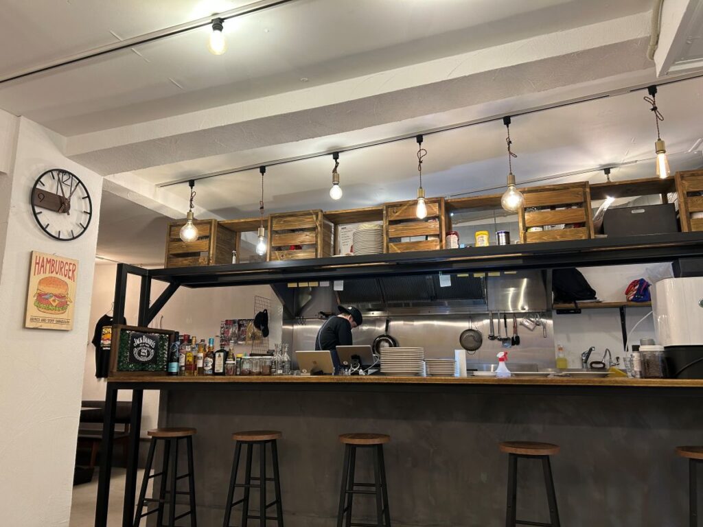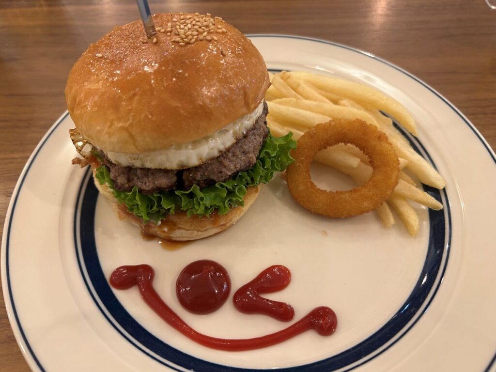 「TERIYAKI」(1,600円)は肉の旨みがしっかり感じられるジューシーなバーガーで、「Hash Brown Burger」(1,700円)は自家製ハッシュドポテトとオリジナルバーベキューソースの組み合わせが絶品です。ドリンクとポテト付きのキッズバーガー(600円)も充実しています。